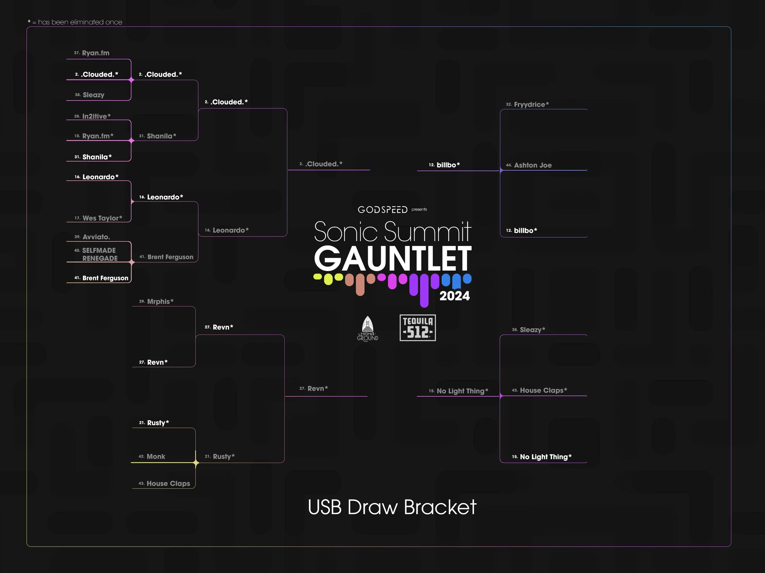 7. The USB draw portion of the event is only available to (a) DJs who have not been placed in the bracket or (b) have only been eliminated once from the event prior, including any eliminations from a USB draw.